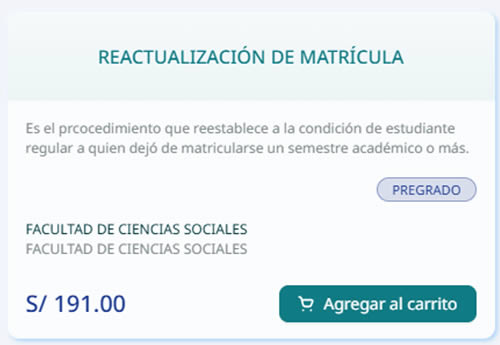 - Busca el trámite “Reactualización de Matrícula de Alumno Regular – Pregrado”, solicita el trámite y adjunta los requisitos.